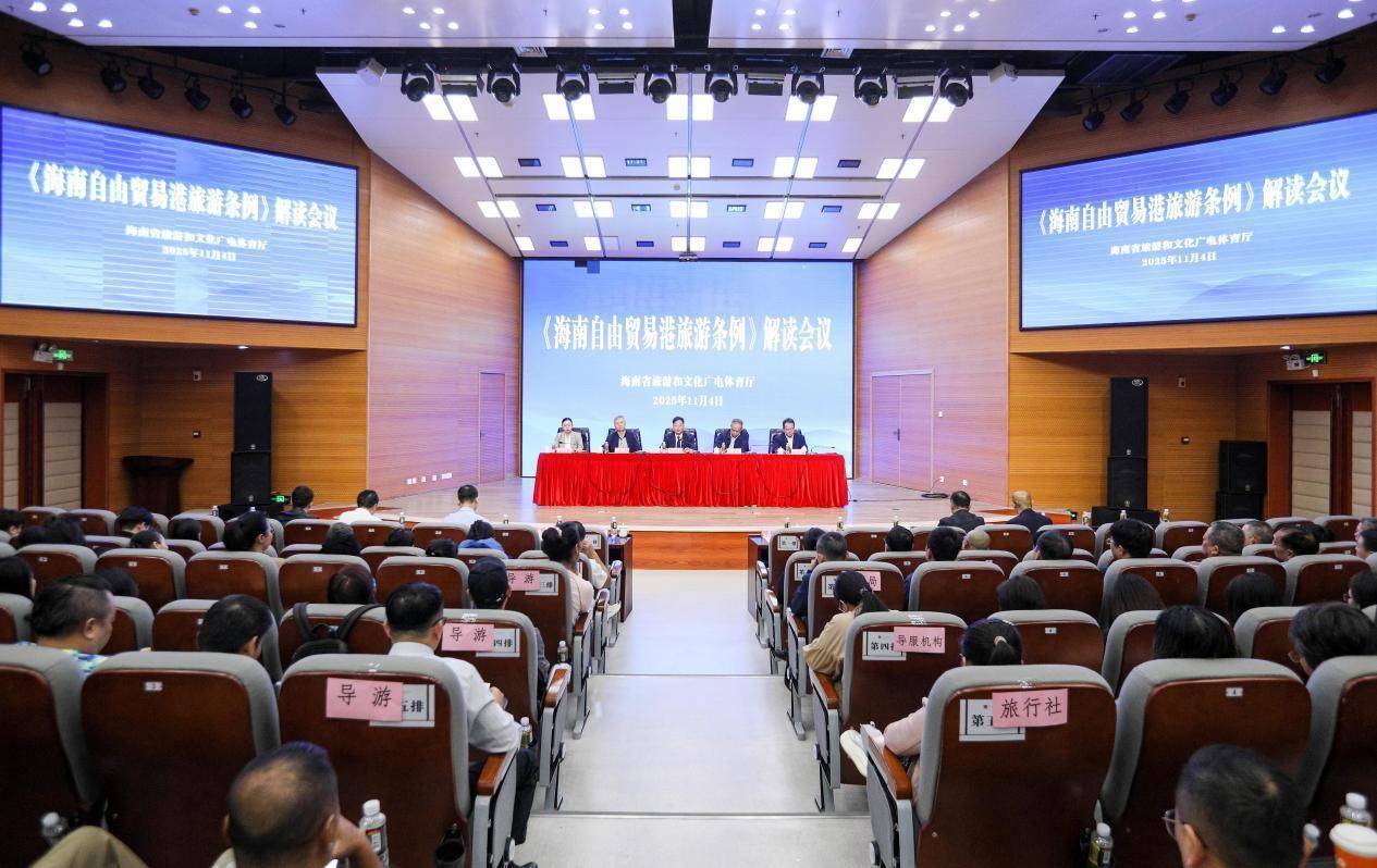人民网海口11月9日电 (记者李学山)《海南自由贸易港旅游条例》(以下简称《条例》)将于2025年12月1日正式施行。11月4日,《海南自由贸易港旅游条例》解读会(旅行社、导服公司、导游专场)在海南省图书馆举办。海南省旅游和文化广电体育厅党组书记、厅长陈铁军分析了当前海南旅行社和导游行业现状和形势,重点解读了《条例》的核心条款,提出了全省旅行社和导游行业转型升级重点和要求。省人大法制委办公室主任李文君解读了《条例》四大亮点。