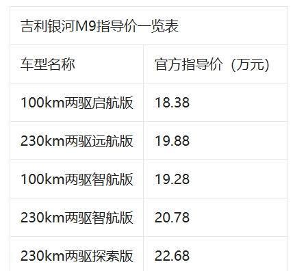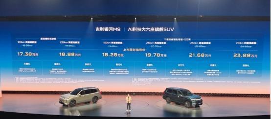 显然,它没打算直接挑战理想L9或者问界M9。吉利很聪明,没去40万以上的高端市场硬碰硬,而是稳稳地把价格锚定在20万级别。来看具体定价:
