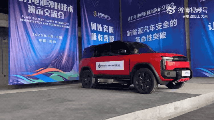 在9月19日,中国汽车碰撞维修技术研究中心联合均胜电子推出了电池弹射技术,在车身内部设置了与安全气囊一样的气体发生器,当电池热失控时,电池在1秒之内会啪地一声被从车身右侧弹射出去,抛到离车身3~6米外的地方。