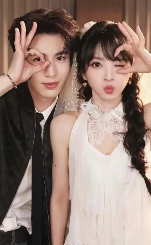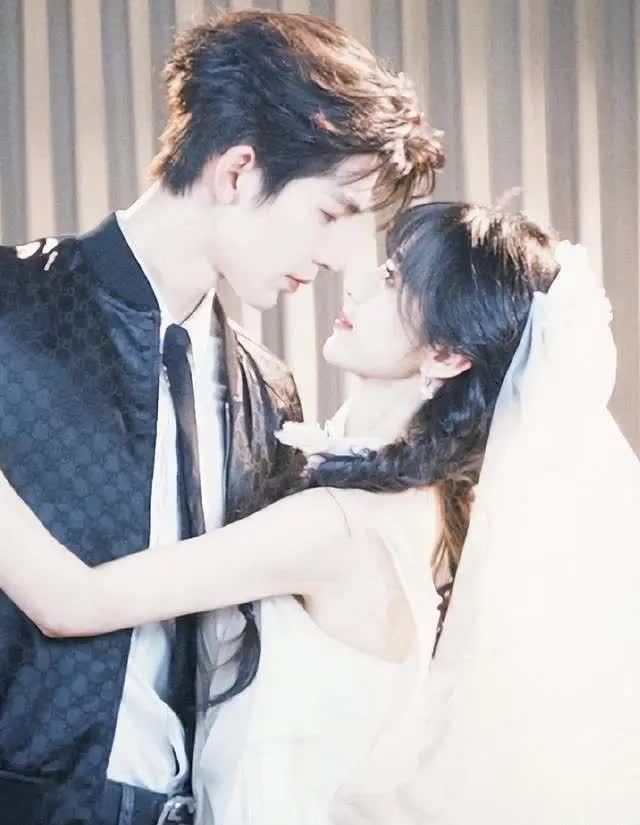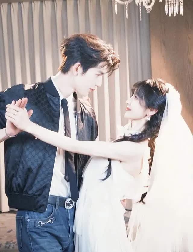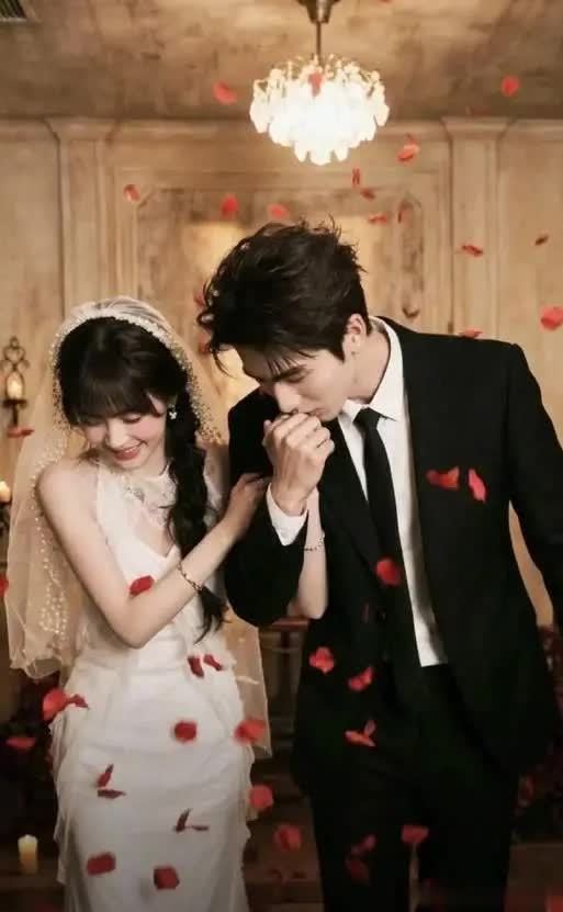现场搭了花瓣雨,打了逆光,田曦薇戴着碎花王冠配蕾丝头纱,张凌赫一身黑西装。22厘米身高差,站一起就是画报。