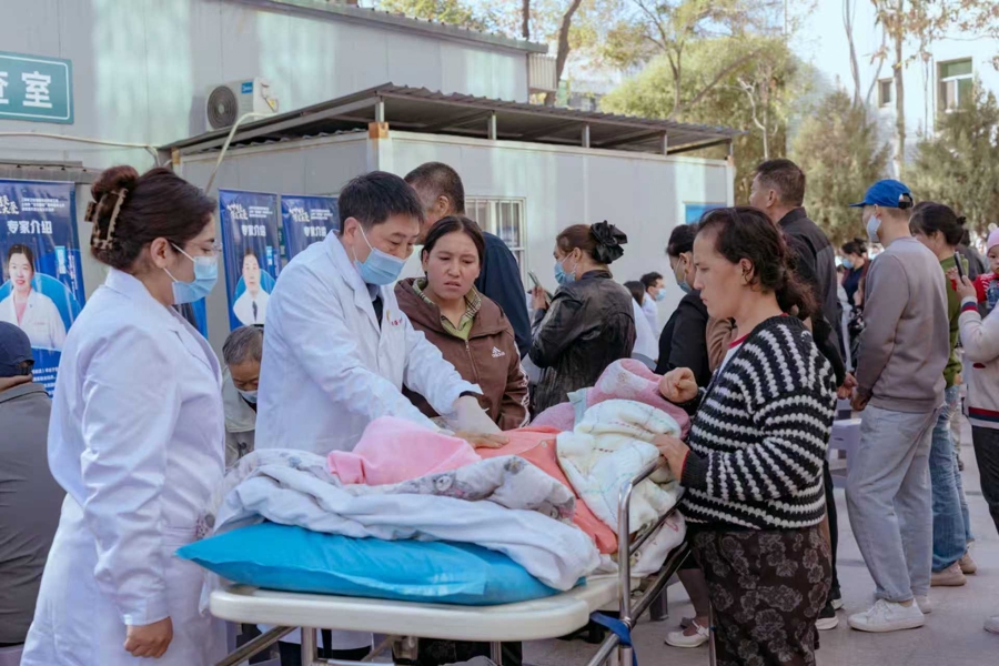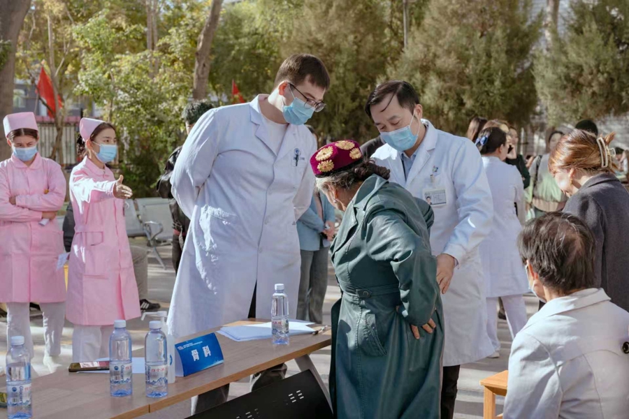 学术“盛宴”后,紧接着深入一线的惠民实践。此次义诊采用“劳模工匠+青年人才”双人才模式,是对“精准援疆、质量援疆”理念的创新实践。劳模工匠代表、原复旦大学附属中山医院内镜中心主任姚礼庆分享了坚守医线的初心与感悟;“医苑新星”青年人才代表、复旦大学附属华山医院浦东院区副院长李骥则表达了青年一代服务边疆、传承薪火的坚定决心。此后,由40余名上海顶尖专家组成的多支医疗小分队分赴巴楚、叶城、莎车、泽普四县,将优质诊疗服务直接送到县乡群众“家门口”,真正实现义诊服务地州全覆盖。义诊现场早有闻讯而来的患者等候,专家们耐心细致地为每一位群众问诊检查,制定个性化的诊疗方案,让喀什群众在家门口就享受到了上海水平的医疗服务。